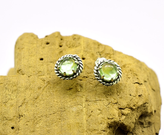 Καρφωτά σκουλαρίκια 10 mm από ασήμι 925 με φυσικές πέτρες περίδοτου σε κλασική στρογγυλή κοπή 6 mm.